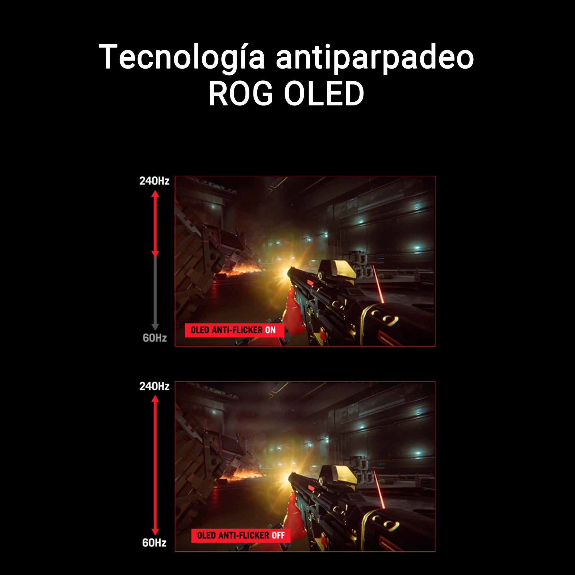 - La tecnología antiparpadeo OLED de ROG ayuda a reducir el parpadeo durante las fluctuaciones de la tasa de refresco
