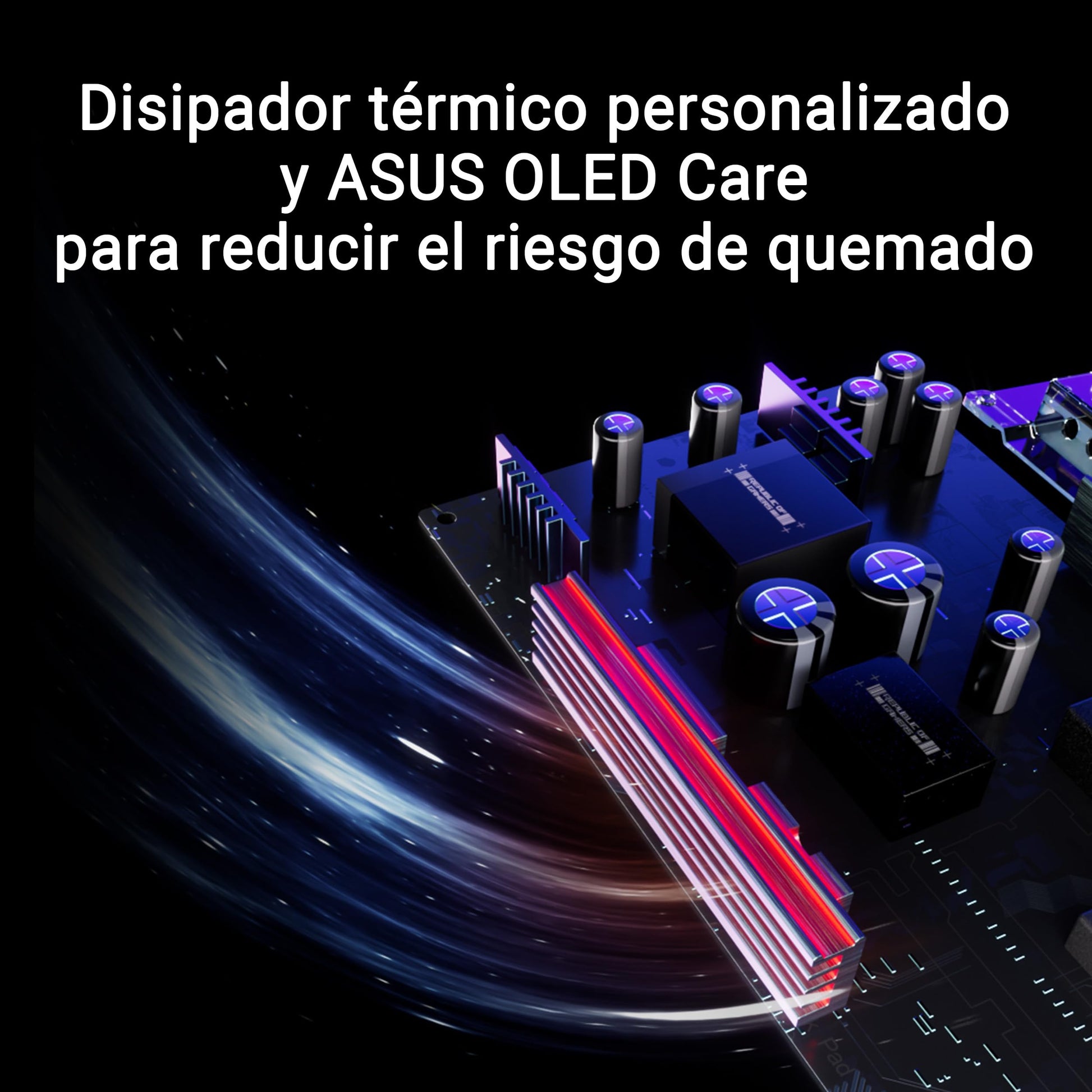 - Disipador térmico personalizado de alta eficiencia, diseño de flujo de aire y funciones ASUS OLED Care para reducir el riesgo de quemado
