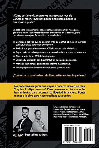 Este libro es para ti si quieres aprender a: Manejar tus finanzas personales de manera efectiva. Sacar todo tu potencial y convertirte en la mejor versión de ti mismo. Reducir tus gastos hasta en un 50% sin perder calidad de vida. Pagar tus deudas rápidamente, ahorrando miles de euros en intereses con el Método V.I.D.A.® Ahorrar al menos un 35% de tus ingresos usando métodos de ahorro efectivos. Conseguir activos que te generen más de 3.000€ al mes en ingresos pasivos. Crear tus propios activos e invertir en activos financieros e inmobiliarios usando estrategias que los ricos emplean. Invertir para llegar a tu jubilación con 1.000.000€ en tu plan de pensiones. Evitar pagar miles de euros en impuestos.