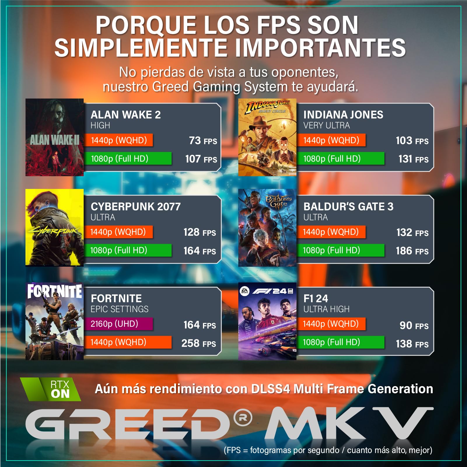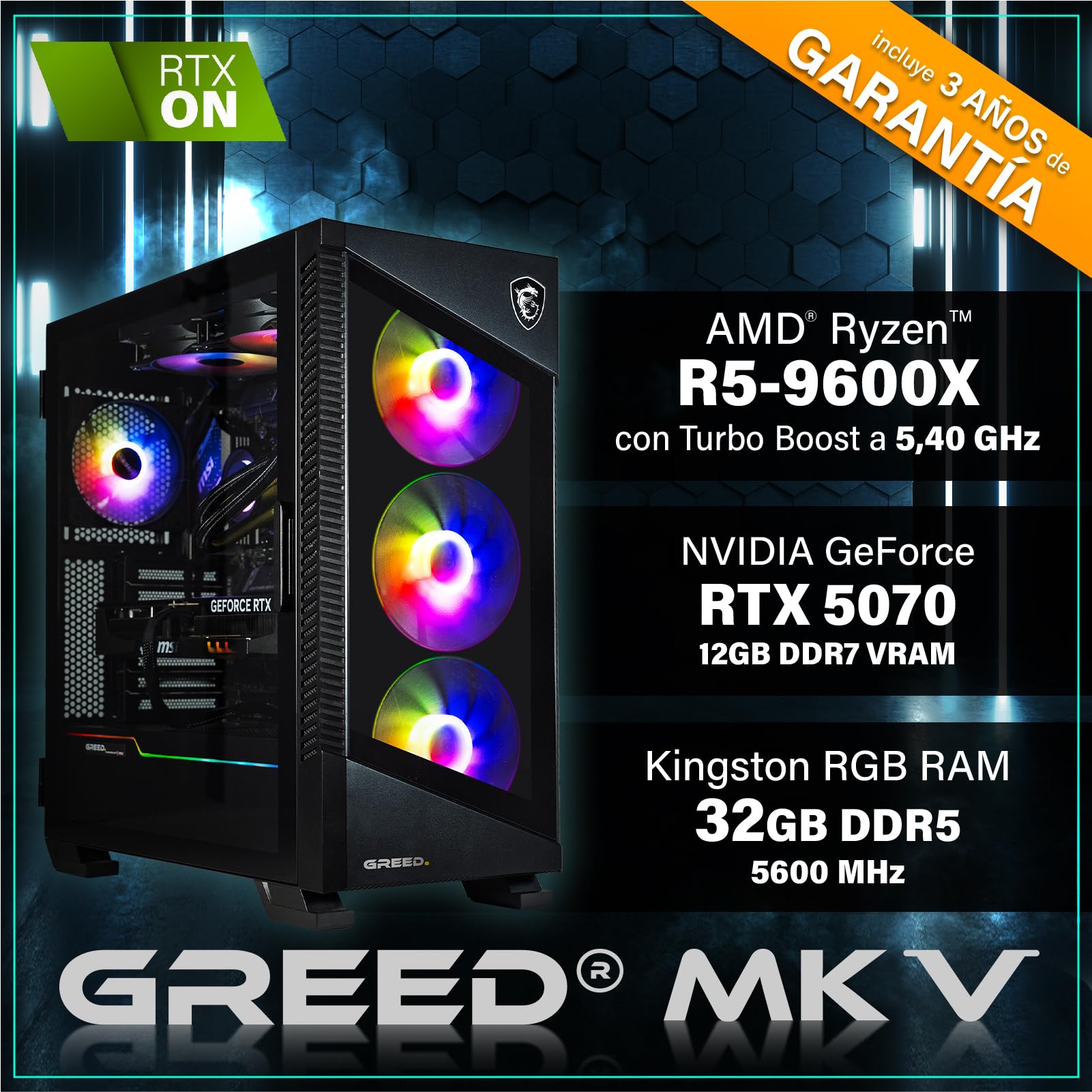 Greed® MK5 - Gaming PC - AMD Ryzen 5 9600X + Nvidia Geforce RTX 5070 12GB - Computadora RGB rápida + Raytracing & 4K - 5,4 GHz - 32 GB RAM DDR5-1TB SSD - WLAN + Win11 Pro